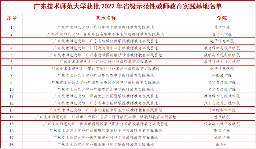为扎实推进我校“新师范”、创建国家教师教育实验区和师范专业认证等方面建设工作,学校积极动员、精心组织开展省级示范性教师教育实践基地遴选和申报工作。根据《广东省教育厅关于公布2022年省级示范性教师教育实践基地立项结果的通知》,我校获批18个第三批广东省示范性教师教育实践基地。截至目前,我校共获批44个省级示范性教师教育实践基地。