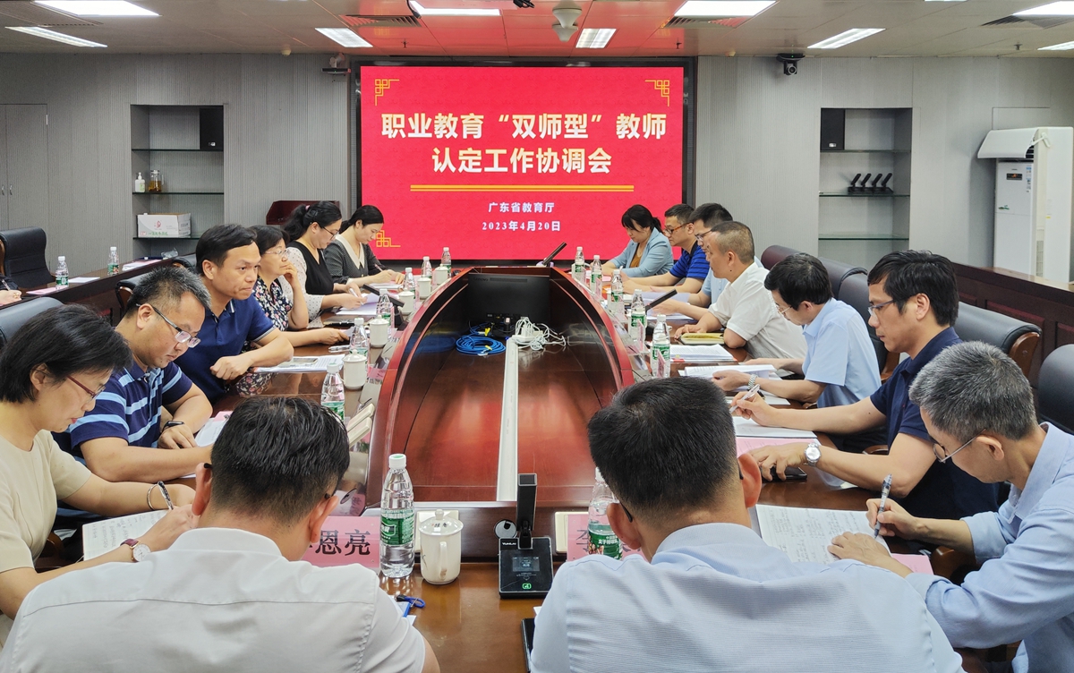为进一步推进我省职业教育“双师型”教师认定工作,加快开展“双师型”教师认定服务,4月20日广东省教育厅在我校东校区工业中心605室召开了职业教育“双师型”教师认定工作协调会。省教育厅师资管理处副处长魏长松,广东省9所承担职业教育“双师型”教师认定的院校,我校规划处、教务处、人事处等相关部门负责人参加会议。会议由我校副校长许玲主持。