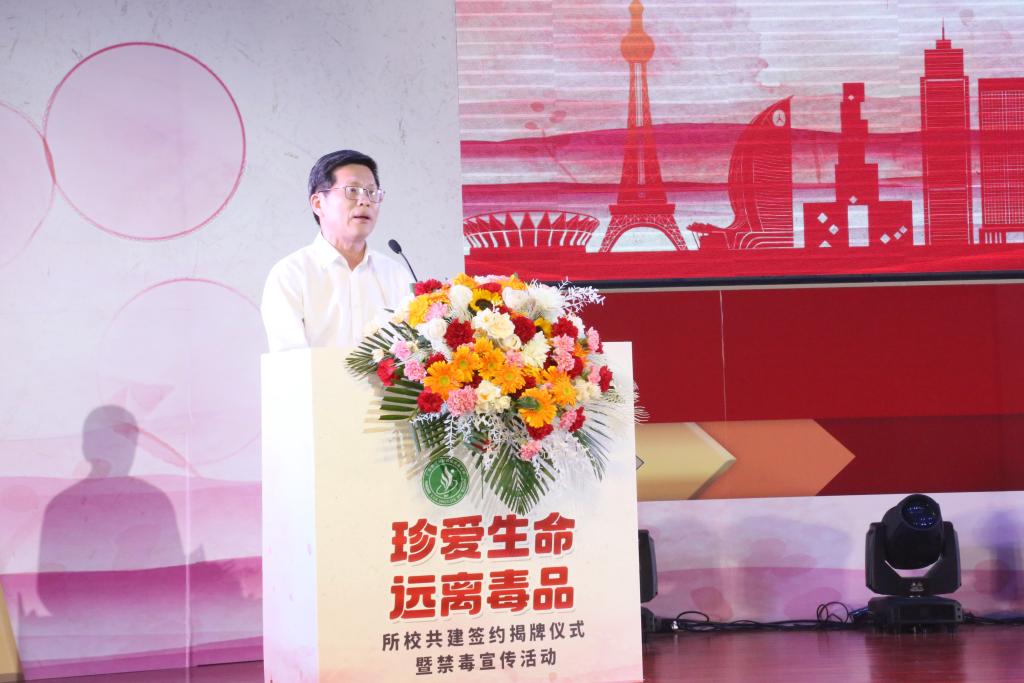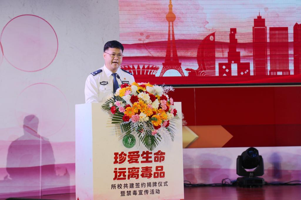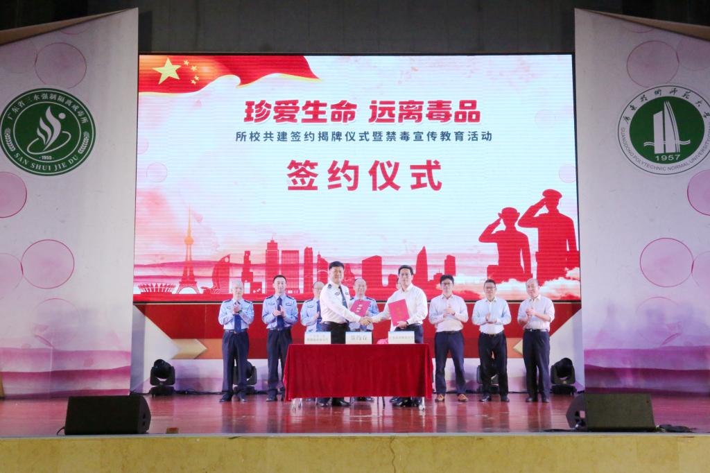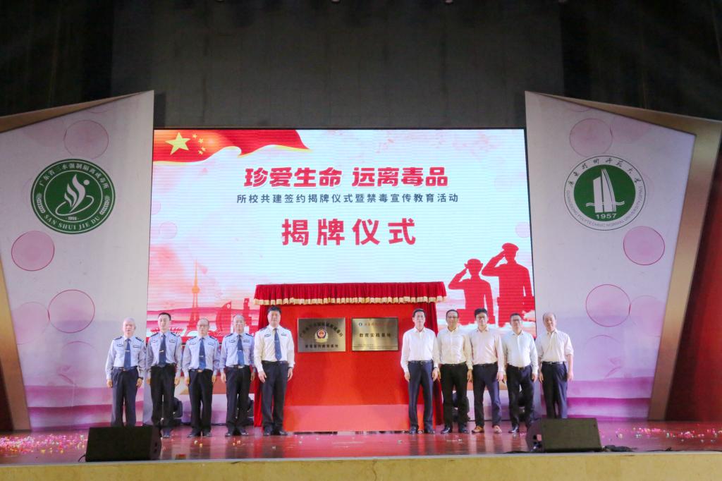 为深入学习贯彻习近平总书记对禁毒工作重要指示精神,认真落实上级工作部署,提高在校师生识毒、防毒、拒毒的意识,助力“平安广东”工作,4月26日,我校与广东省三水强制隔离戒毒所(以下简称“省三水所”)在白云校区联合开展“珍爱生命 远离毒品”所校共建签约揭牌仪式暨禁毒宣传教育活动。学校副校长苏晖,省三水所党委书记、所长刘增援和所党委委员、副所长刘文奇出席活动,省三水所相关部门领导、我校相关职能部门及学院负责人、师生代表等参加活动。