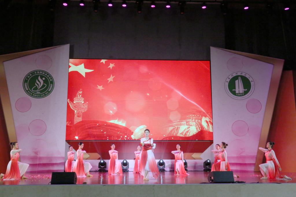 在禁毒宣传文艺晚会中,我校师生与省三水所的警官们共同奉献了舞蹈《启航》《誓言》,情景配乐朗诵《回家》,原创歌曲《追着阳光走》,歌曲《为爱出发》等精彩节目,并进行了集体禁毒宣誓。一曲《歌唱祖国》的全体大合唱将现场推向高潮,在激昂雄壮的歌声中,宣教活动圆满帷幕。