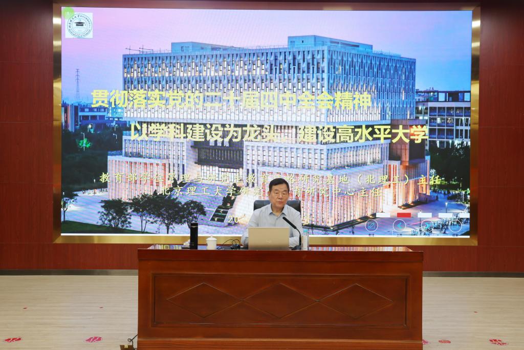 会上,王战军教授以《贯彻落实党的二十届四中全会精神 以学科建设为龙头,建设高水平大学》为题,从“贯彻精神,大学建设高质量开局”“战略研判,提升学科建设能力”“创新引领,走出大学发展新路”等三个方面作了深刻阐释。王战军教授强调,学校要善于观大势、谋大局,主动融入国家和区域发展格局,结合自身办学传统和资源禀赋,加强顶层设计和战略谋划。要深化机制改革,释放人才活力,完善人才引进、培养、使用、评价、考核、激励全链条机制,更加突出品德、能力、业绩导向,为不同发展阶段的人才搭建成长阶梯。