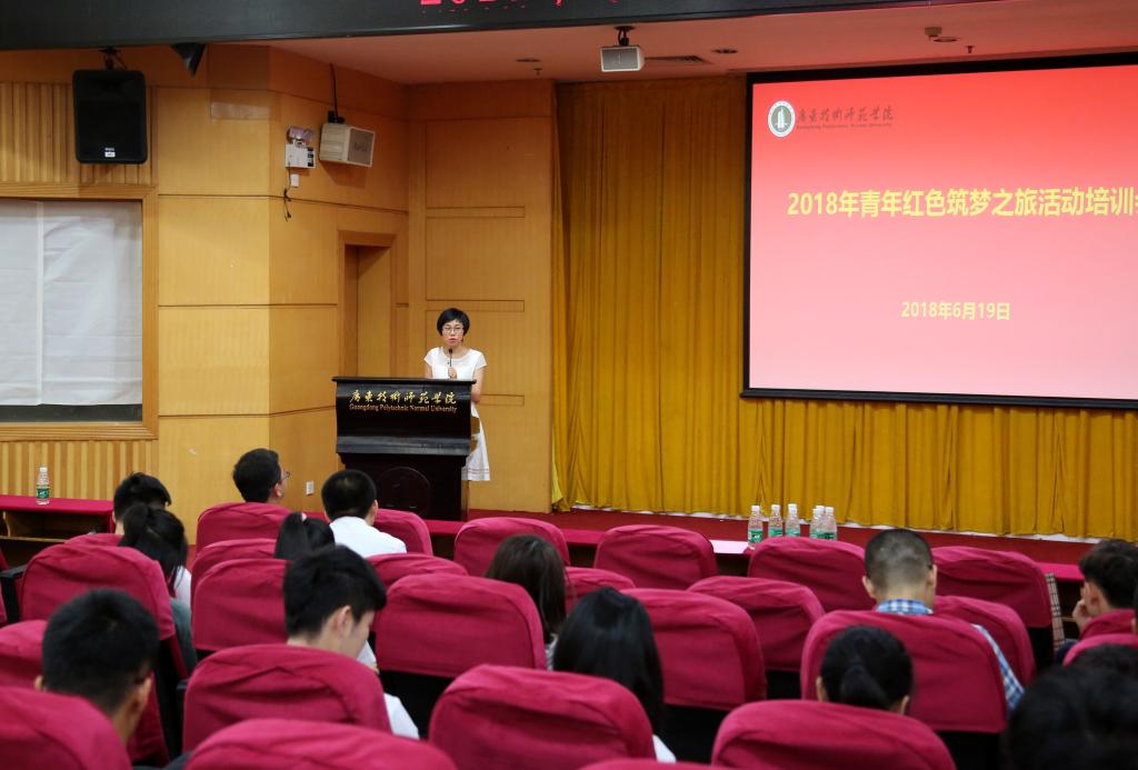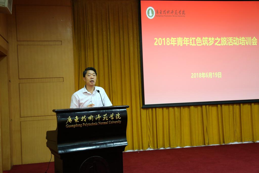 根据省教育厅工作安排和《广东省第四届中国“互联网+”大学生创新创业大赛“青年红色筑梦之旅”活动方案》文件要求,由我院牵头成立并组织实施“青年红色筑梦之旅”之“十九大宣讲小分队”。6月19日,为深入学习宣传贯彻习近平新时代中国特色社会主义思想和党的十九大精神,推动工作进度,学院在校本部一教208讲学厅举行了“青年红色筑梦之旅”授旗仪式暨十九大宣讲小分队辅导报告会。学院党委书记凌靖波、学院院长郭杰、副院长许玲等领导出席会议,党委宣传部、学生工作部、团委、马克思主义学院主要负责人,党的十九大代表陈小花,24支十九大宣讲小分队立项团队负责人和指导老师参加了会议。会议由党委宣传部部长韩柏光主持。