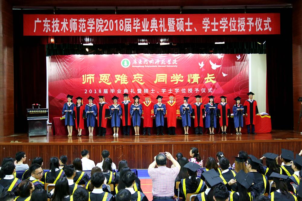 郭杰表示,学校即将更名为广东技术师范大学。这是2006年我院获得硕士学位授予权后的又一次飞跃。在这欢庆的时刻,同学们共同见证了学校的发展!郭杰代表学校全体师生员工,向2018届全体毕业生及其家人致以最热烈的祝贺!