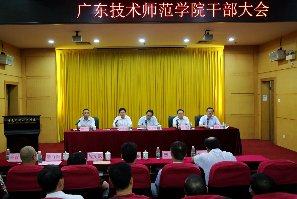 会上,陈文明宣读了省委任免通知,宣布省委关于骆少明、郭杰同志的任免决定。经省委批准,骆少明同志任广东技术师范学院党委委员、常委、党委副书记、院长;免去郭杰同志广东技术师范学院院长、党委副书记、常委、委员职务。