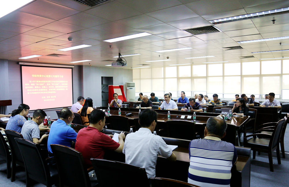 为深入学习贯彻全国宣传思想工作会议和全国教育大会精神,增强“四个意识”、坚定“四个自信”,自觉承担起举旗帜、聚民心、育新人、兴文化、展形象的使命任务,促进全体师生在理想信念、价值目标上紧紧团结在一起,奋力开创新时代学校事业发展新局面。9月26日,学院党委中心组召开第七专题学习会,深入学习习近平总书记在全国宣传思想工作会议和全国教育大会上的重要讲话精神。党委中心组全体成员参加了会议。