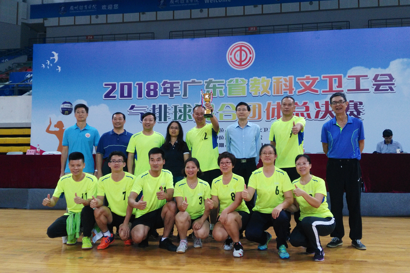 10月13日、14日,由广东省教科文卫工会主办,广州体育学院承办的2018年广东省教科文卫工会气排球混合团体总决赛在广州体育学院亚运馆举行。经过2天的激烈比赛,队员们发扬团结协作精神,顽强拼搏,力克强队,最终获得团体第四名的好成绩,展现了高水平的竞技水平和良好的精神风貌。