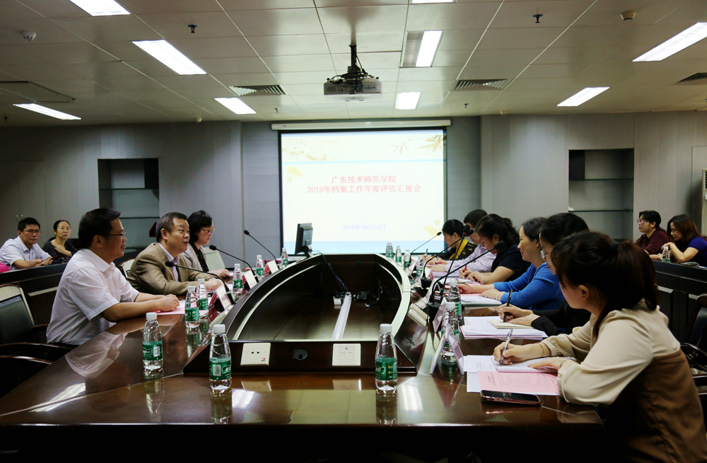 10月24日上午,省直单位档案工作检查评估专家组一行6人对我院档案工作进行检查评估。根据评估工作要求,我院在工业中心605举行了学院2018年度档案工作评估汇报会,学院院长骆少明,党办、院办负责人以及我院全体专兼职档案员60多人参加了会议,会议由省直单位档案工作第十三协作组组长、广东工业大学档案馆馆长孙丽芳主持。