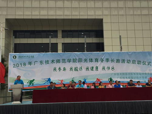学生代表、财经学院匡柳容同学向全校同学发出冬季长跑的倡议书。随后,冯灿仪副院长为长跑起跑发令并带领全体师生沿着田径场、校道跑满全程。