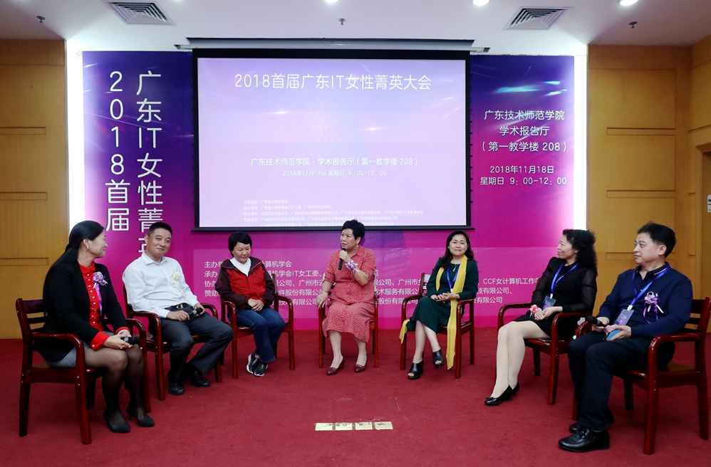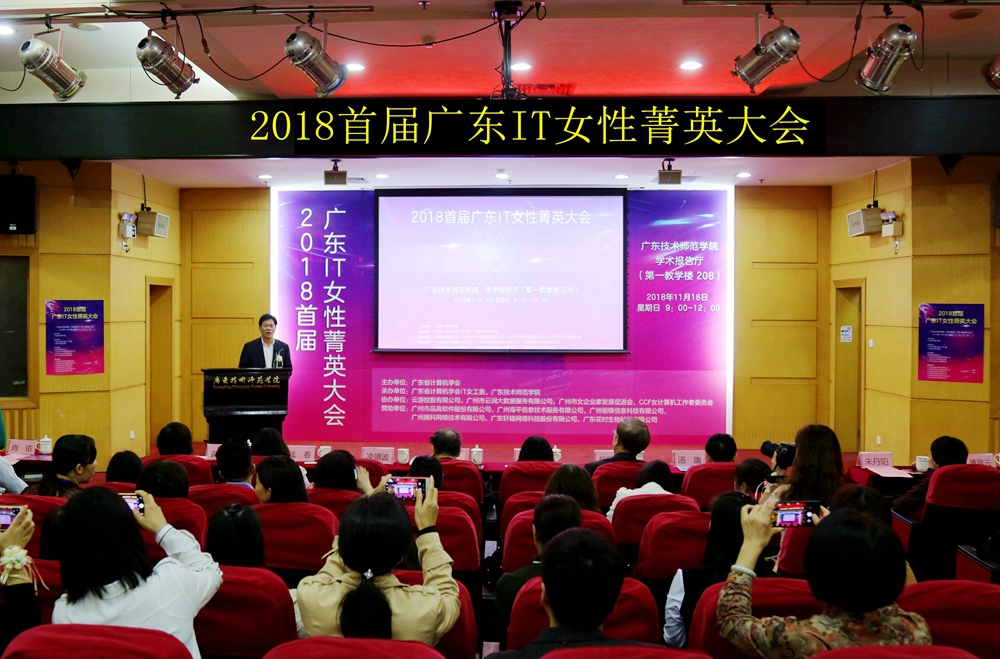 11月18日上午,由广东省计算机学会主办,广东省计算机学会IT女工委、广东技术师范学院承办,云游控股有限公司等单位协办,广州市品高软件股份有限公司等单位赞助的2018首届广东IT女性菁英大会,在我院校本部一教208讲学厅成功举办。广东省计算机学会IT女工委成员,省内各大院校、科研院所、企业的IT女性菁英共200余人参加了会议。