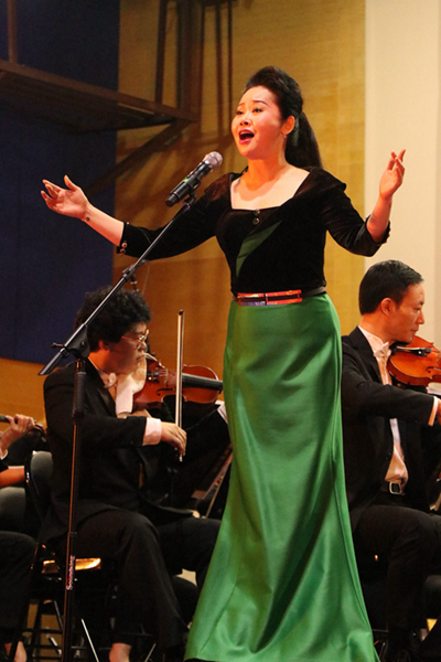 我院音乐学院副院长刘春红教授受邀登场演唱《绒花》令人印象深刻,之后,刘春红教授与中央音乐学院交响乐团合作,联袂演绎声乐作品《中国梦正飞扬》将音乐会推向高潮,该作品是由音乐学院院长尹新春教授作曲,为庆祝党的十九大胜利召开,反映在习近平新时代中国特色社会主义思想的指导下,祖国的蓬勃发展,不忘初心,继续前行,中华民族伟大复兴中国梦一定能够实现的决心和信心。作品宏伟大气,刘春红老师的演绎韵味十足,中央音乐学院交响乐团配合默契,该作品获得了观众们的高度认同和欢迎。