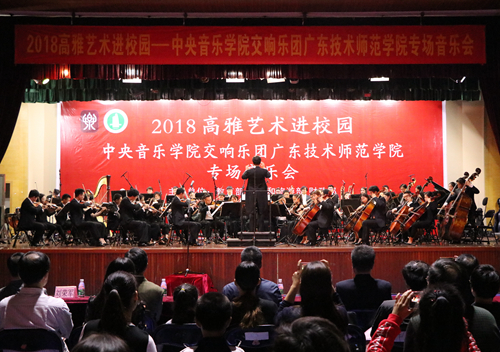 11月20日,由教育部、文化和旅游部、财政部主办,广东省教育厅承办的“高雅艺术进校园”中央音乐学院交响乐团广东技术师范学院专场音乐会在校本部综合馆3楼隆重举行。学院副院长黄秋文、中央音乐学院管弦系主任,博士生导师赵瑞林教授、广东省教育厅、学院有关职能部门以及2000余名师生欣赏了这场音乐盛宴。