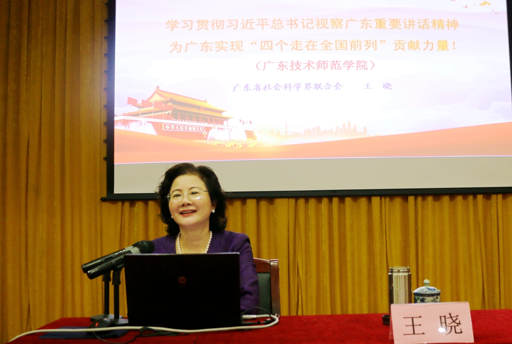 12月6日,学院举行习近平总书记视察广东重要讲话精神宣讲报告会,集中学习贯彻习近平总书记视察广东重要讲话精神。省委宣讲团成员、广东省社会科学界联合会党组书记、主席王晓同志应邀作宣讲报告。学院党政领导、全体中层干部、马克思主义学院教师、辅导员和学生党员代表等参加会议。