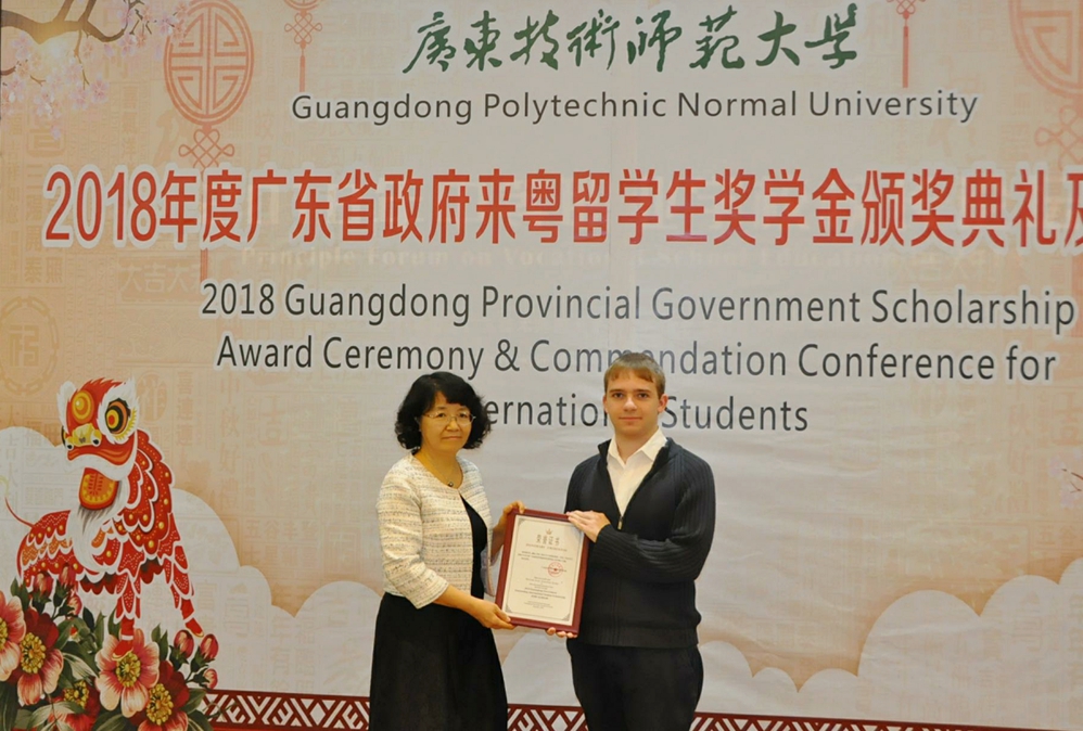 为表彰我校获广东省政府来粤留学生奖学金的学生,12月20日,国际教育学院在校本部一教209举办2018年度广东省政府来粤留学生奖学金颁奖典礼。