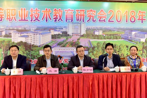广东省高等职业技术教育研究会2018年学术年会12月22日在广州从化召开。省教育厅职业教育与终身教育处副处长张家浚、省高等职业技术教育研究会理事长、学校校长骆少明等出席会议并讲话。我校职教研究院院长黄崴教授(副校级)以及陶红教授、邓文新教授等参加本次学术年会。