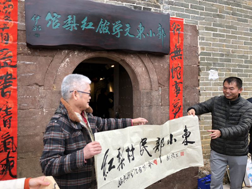 郭小东文学馆红梨馆开馆仪式暨广东作家手稿展1月18日在韶关市始兴县红梨村举行。广东省编办主任潘享清、我校郭小东教授共同为郭小东文学馆红梨馆揭幕。参加开馆仪式的还有始兴县副县长段琪、我校郭小东文学馆馆长袁向东教授、始兴县青年作家代表、红梨村村民代表,他们和前来红梨村旅游观光的游客一起共同见证这一广东文学史上的盛事。