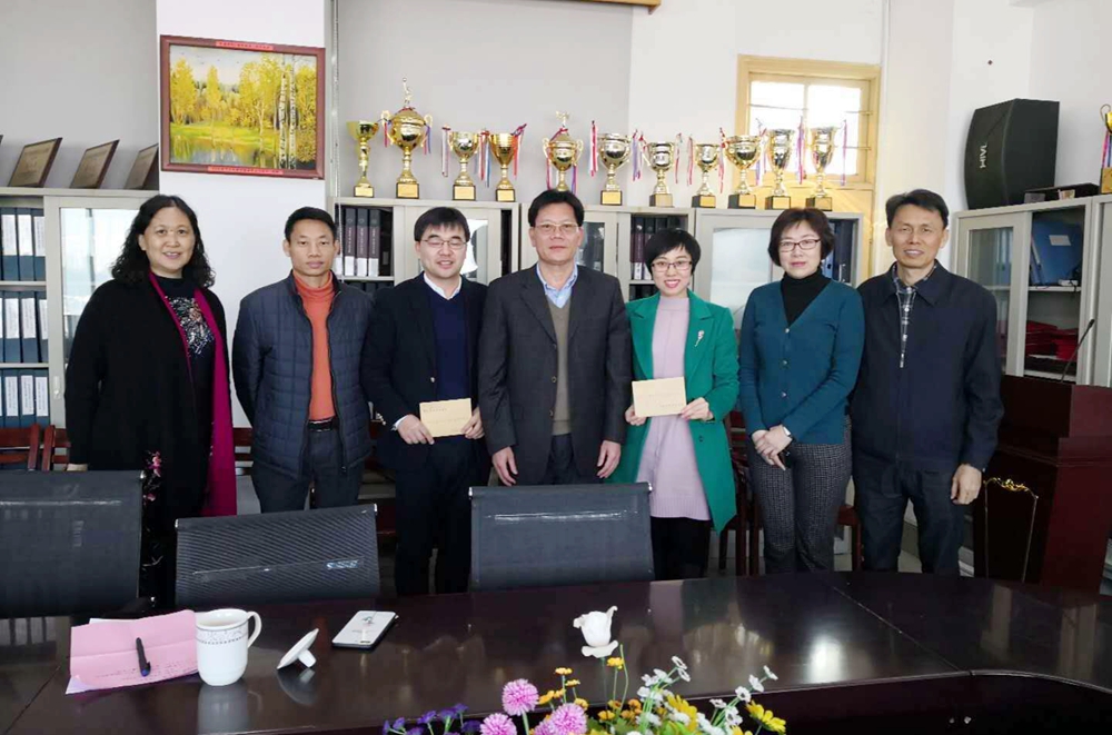 慰问走访中,校领导代表学校给受慰问的教师送上慰问金。(党委组织部 工会 人事处 离退休人员管理处)