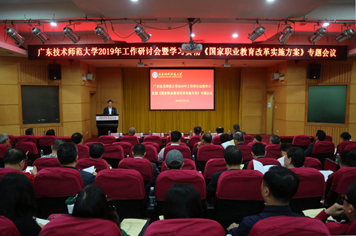校领导在专题研讨中结合学校实际深入研究学习贯彻落实《国家职业教育改革实施方案》和《粤港澳大湾区发展规划纲要》的措施,并对学校2019年工作要点进行了充分讨论。