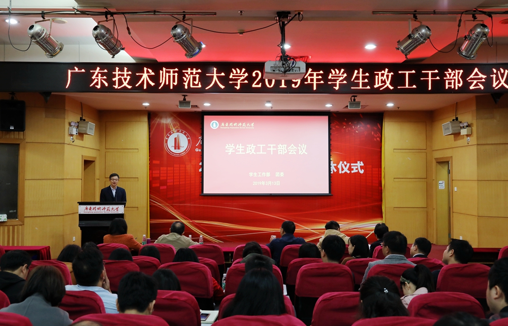 会上,郭磊、朱德喜两位同志分别代表学生工作部(处)、校团委简要回顾了2018年工作并布置新学期工作。2019年,学生工作部将以全面贯彻落实习近平总书记对广东重要讲话和重要指示批示精神为契机,立足学生发展,在“思想引领、招生就业、资助育人、队伍建设、平台创新”等五大块二十点精准施策,精准发力,全力确保工作稳、师生稳、校园稳,以优异成绩迎接新中国成立70周年。校团委则重点推进“挑战杯”“创青春”等大学生课外学术科技竞赛及学生社团管理建设。