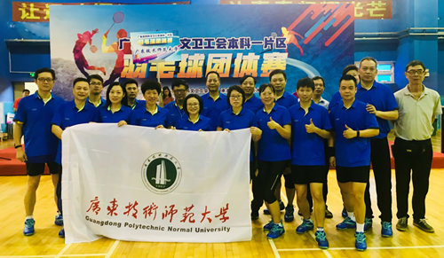 由广东省教科文卫工会主办的广东省本科院校第一片区羽毛球团体赛于4月27日在华南师范大学进行。我校组成了由副校长黄秋文担任领队,方刚、常锋峰担任教练的教工代表队参加了混合团体赛和“主席杯”两个项目的比赛并取得好成绩。