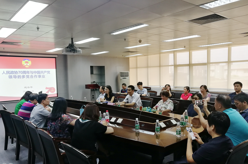 为庆祝新中国和人民政协成立70周年、响应全党开展的“不忘初心、牢记使命”主题教育,6月12日下午,学校党委统战部在工业中心605举办统战“四同”系列活动之“同德小沙龙”第一讲,民盟中央宣传委员会委员、民盟广东省第十五届委员会委员、民盟广东省参政党理论研究会副会长、中国民主同盟传统教育基地(广州)领导小组副组长兼办公室主任、民盟广州市从化区基层委员会主委、广州大学华软软件学院执行董事兼常务副院长迟云平应邀作题为《人民政协70周年与中国共产党领导的多党合作事业》的主题讲座,学校党委办公室主任、统战部部长李琴,各统一战线成员代表、各二级党组织统战委员等参加活动。活动由李琴主持。