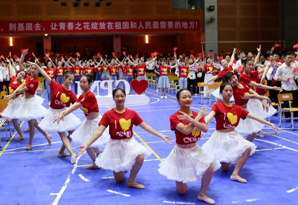 教师代表数学与系统科学学院梁海华教授、计算机科学学院赵慧民教授、文学与传媒学院陈小花教授分别发言;毕业生代表电子与信息学院2015级网络工程专业林泽宇、文学与传媒学院2017级学科教学语文的黄履媛、管理学院2015级市场营销2班赖伊林分别发言;全体2019届本专科毕业生进行了宣誓。