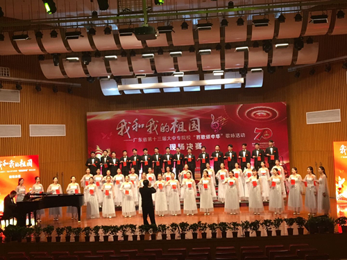 7月1日,正值中国共产党建党98周年之日,“我和我的祖国——广东省第十三届大中专院校‘百歌颂中华’歌咏活动”在华南理工大学大学城校区音乐厅拉开帷幕,来自广东省35所大中专院校的师生欢聚一堂、同台献技,以不同形式、不同风格的歌曲,共同讴歌中国共产党、讴歌祖国伟大成就。我校选送的大合唱曲目获得好成绩。