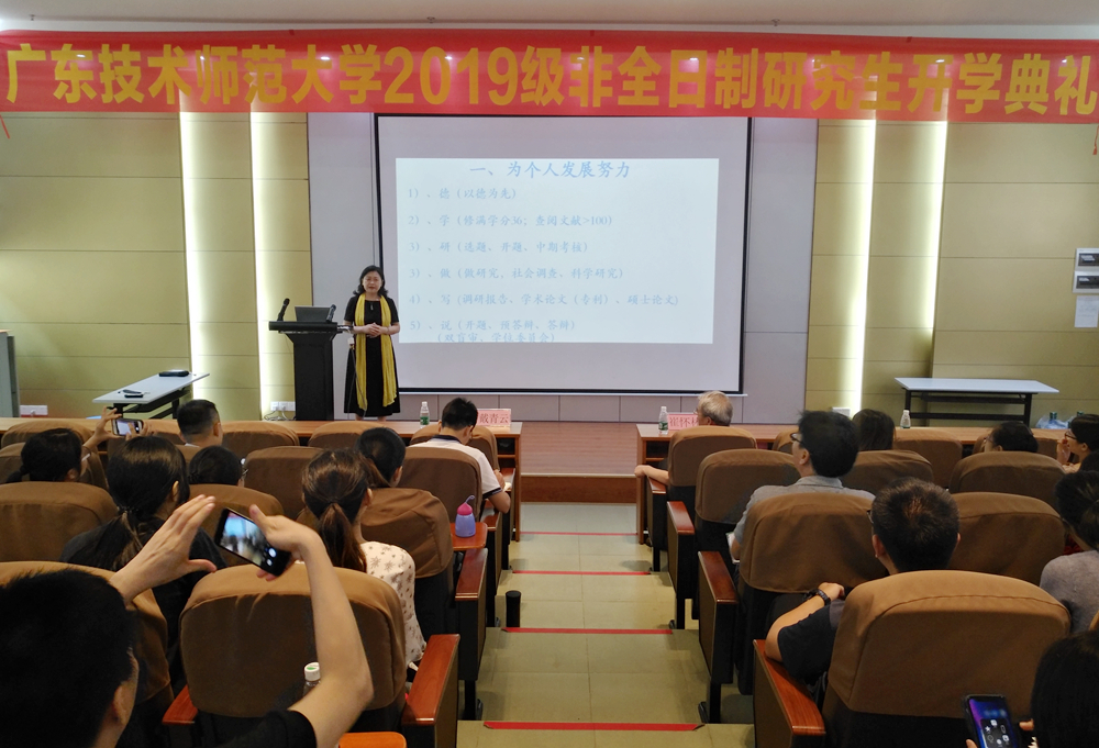 下午,戴青云还为新生们作了题为《为什么要读研究生》的专题讲座。讲座从个人、学校、家庭、社会、国家发展等5个维度深入浅出地阐述了为什么要读研究生、如何读好研究生?戴青云还以自身培养的学生为例作了个案分享。整个讲座掌声不断。