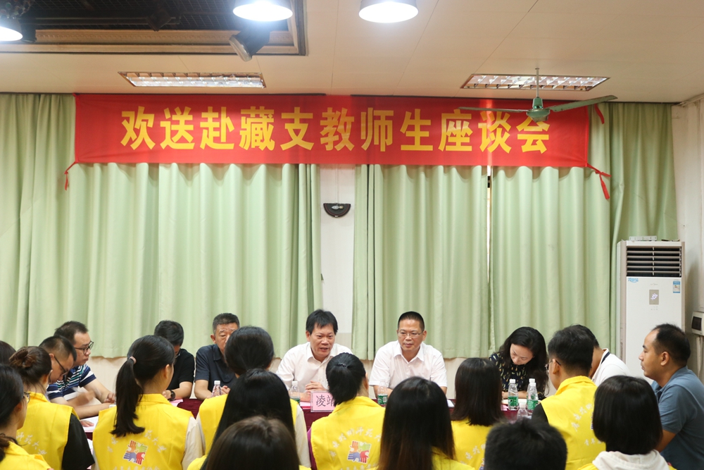 8月22日,我校在校本部行政楼一楼工会活动室举行第三批赴藏支教师生欢送座谈会。学校党委书记凌靖波、党委副书记李向明出席了会议,学生处、相关二级学院人员和13名赴藏支教师生参加了会议。