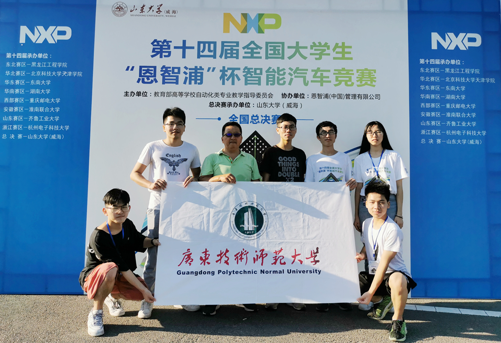 8月24日—25日,由教育部高等学校自动化类专业教学指导委员会主办、恩智浦(中国)管理有限公司协办、山东大学(威海)承办的第十四届“恩智浦”杯智能汽车竞赛全国总决赛在山东大学(威海)举行。由我校机电学院郑健生、邓法志、黄沅华同学组成的“广师二队”(指导教师:杨永)获三轮变形金刚组全国一等奖(冠军);由机电学院林志荣、陈信强、朱卓斌同学组成“ABC队“(指导教师:闫华、杨永)获无线节能组二等奖。这也是广东省唯一获得此项赛事冠军的高校。