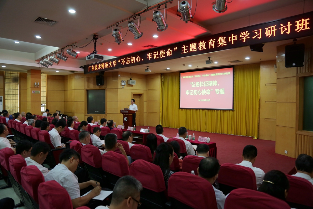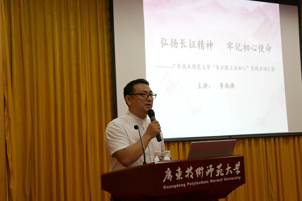 9月20日,学校主题教育办安排广东省“五一劳动奖章”获得者、广东省特支计划青年文化英才李尚旗教授作“弘扬长征精神,牢记初心使命”专题学习辅导报告。省委主题教育领导小组第八巡回指导组莅临指导会议,全体校领导、省管干部、全体中层干部参加了报告会。