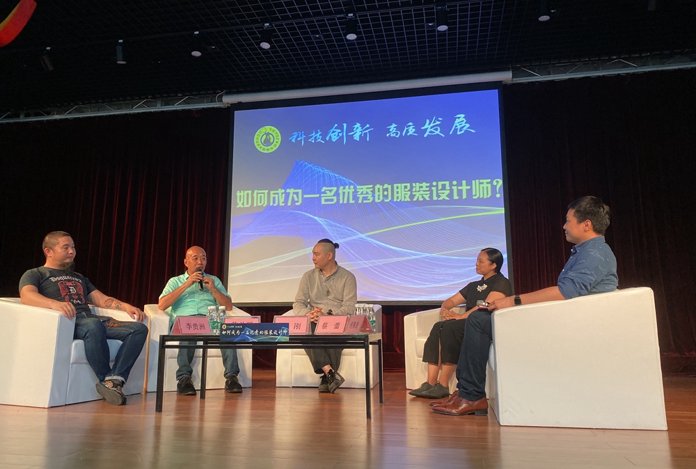 第三届“均安牛仔杯”全国大学生牛仔设计大赛复赛系列活动《如何成为一名优秀的服装设计师》交流分享会也在当天同步举行。广东省服装服饰行业协会副会长兼秘书长黄益群;中国十佳时装设计师、中国针织工业协会花式纱色纱分会常务副会长兼秘书长黄刚;广东省十佳服装设计师、首届广东纺织服装非遗推广大使、我校美术学院服装设计系主任蔡蕾教授;广东省十佳服装设计师李贵洲等4位来自服装行业不同领域的嘉宾从自身角度出发,分享了各自的专业见解。现场领导、嘉宾、师生等共140多人参与了分享会。