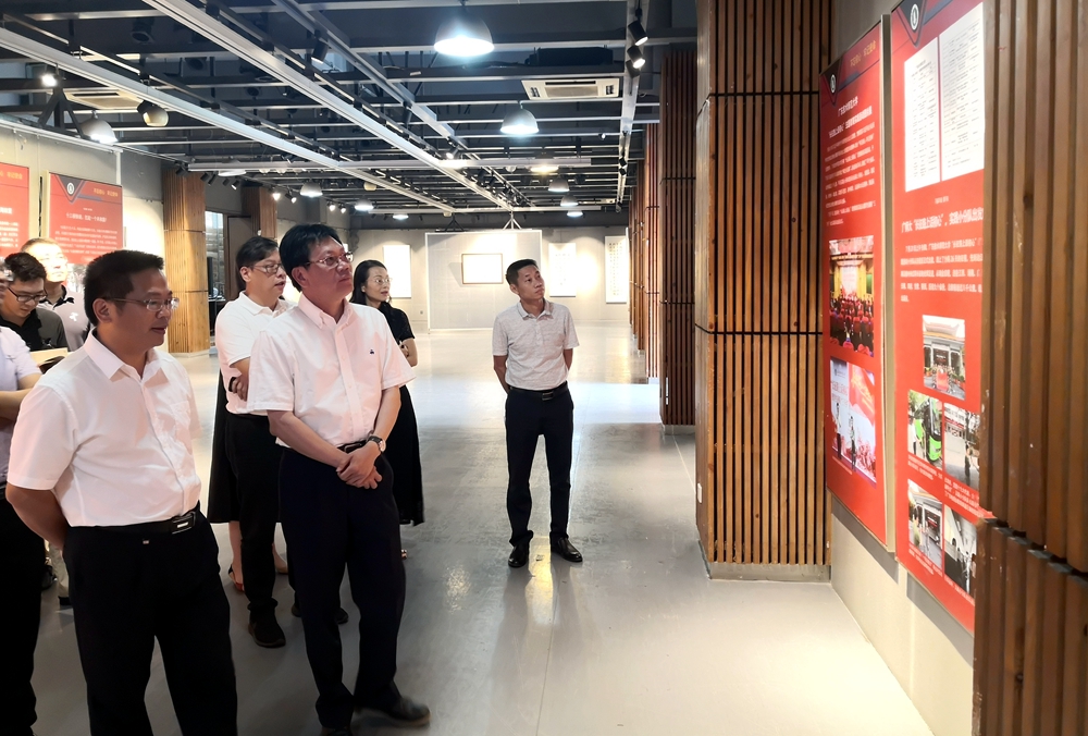 10月14日,学校党委书记凌靖波、党委副书记李向明,党委办公室、党委组织部、党委宣传部负责同志和美术学院领导班子成员来到展馆,观览了“不忘初心、牢记使命”主题教育、“长征路上话初心”思想教育实践活动、庆祝新中国成立70周年书画书法作品等展区,观看了广师大版《我和我的祖国》MV。