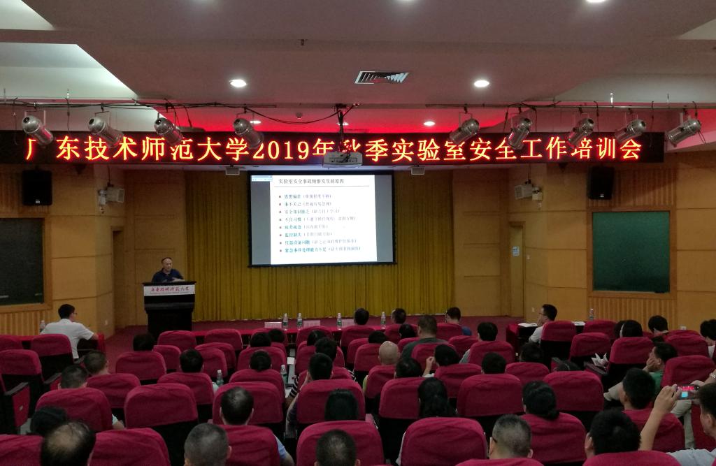 为扎实推进“不忘初心、牢记使命”主题教育,以问题为导向,将学习教育与业务工作紧密结合起来,真抓实管,做深做细,不断强化学校实验室工作人员的安全意识,推动实验室安全管理责任落实,10月15日下午,学校在东校区第一教学楼208讲学厅举办2019年秋季实验室安全工作培训会。副校长潘自勉出席会议并讲话,资产与实验室管理处、教务处、科研处、保卫处、后勤服务管理处相关人员及广东工业实训中心、网络信息中心、各学院分管实验室建设工作副院长及实验室工作人员参加培训会。