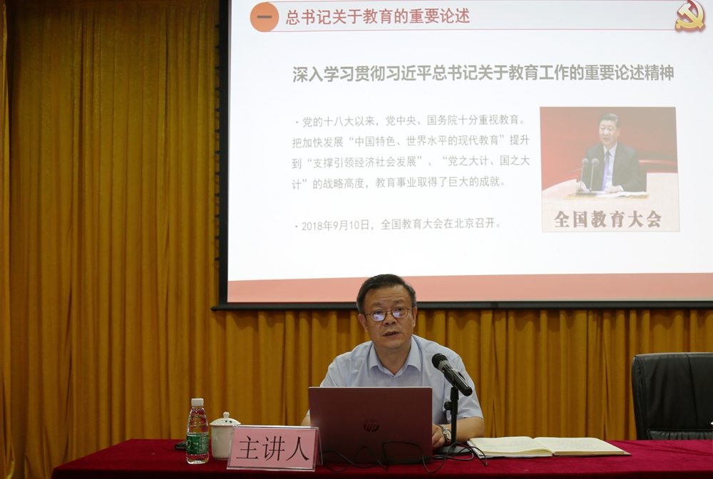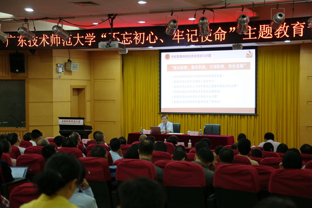根据中央、省委的部署要求和学校开展“不忘初心、牢记使命”主题教育的安排,10月30日下午,校长骆少明在东校区一教208讲学厅作了题为《坚定办学定位,彰显职教师资培养特色,服务粤港澳大湾区建设》的专题党课。学校省管干部、全体中层领导、学科带头人、系部主任、教研室主任到场听课。专题党课由学校党委副书记李向明主持。