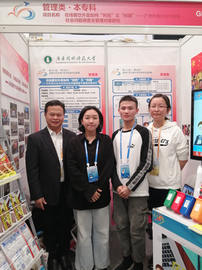 管理学院《在线餐饮外卖如何“利民”又“利国”——广州外卖行业引发的社会问题调查及管理对策研究》(参赛学生:林俊龙、张文靖、林晓兰、陈庆珊、蔡佩芷、黄运楠、方丹薇、梁显濠,指导老师:廖丽平)关注社会热点问题,外卖行业为社会带来了巨大的经济效益,但其引发的食品安全问题、交通安全问题和餐盒污染问题,团队结合多中心治理理论,利用博弈矩阵模型,基于顾客理性消费的角度,对政府、平台、商家进行三方博弈分析,得出政府加强监管和惩处力度是必要的,并进一步提出以政府主导管理,平台协调管理,商家参与管理,顾客监督管理的四中心管理模型,使在线餐饮外卖“利民”又“利国”。