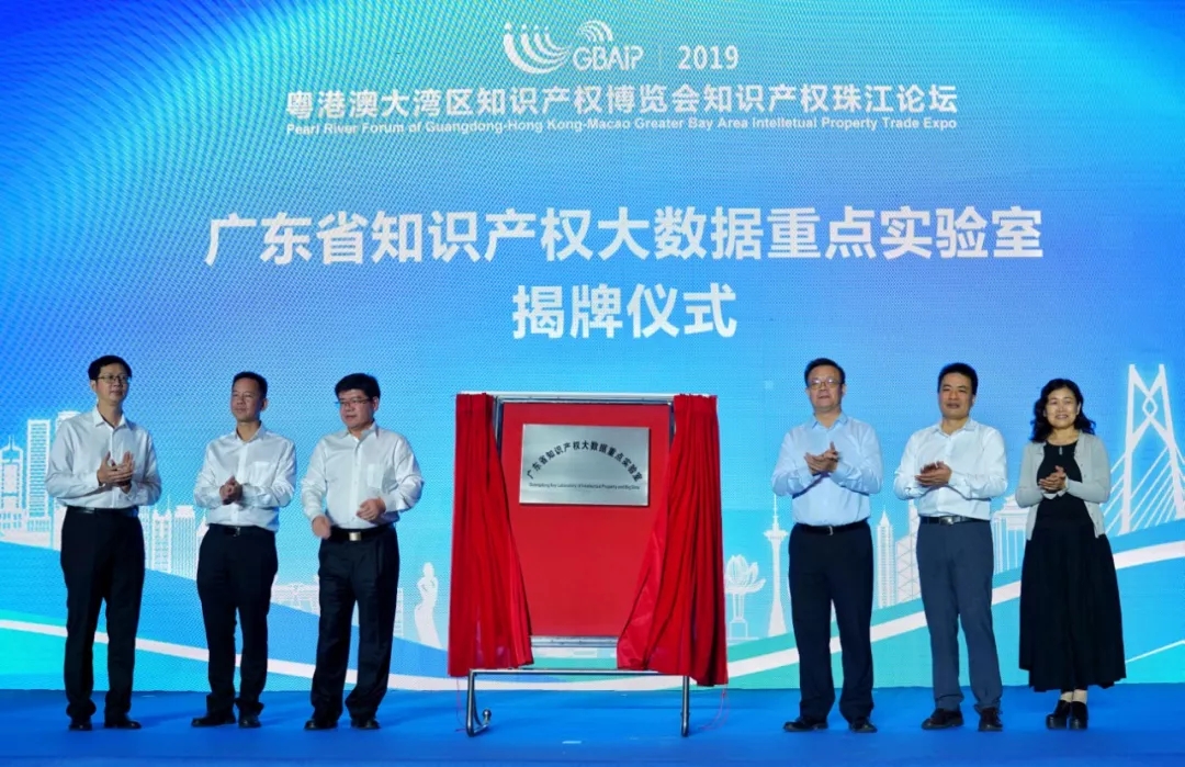马宪民、骆少明、郑海涛、彭茂祥、陈为民、戴青云共同为知识产权大数据重点实验室揭牌。