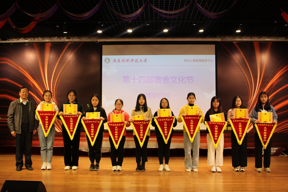 12月5日,在《雪花的快乐》合唱中拉开了广东技术师范大学第一届宿舍文化节闭幕式暨颁奖典礼的序幕。学校副校长冯灿仪,学生处、团委、后勤服务管理处、音乐学院、光电工程学院等部门领导出席了闭幕式。