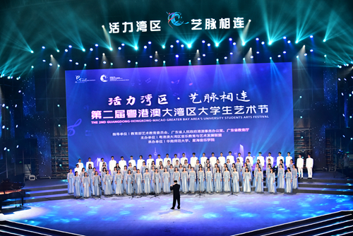 由教育部艺术教育委员会、广东省教育厅、广东省港澳事务办公室、粤港澳大湾区音乐教育与艺术发展联盟主办,华南师范大学、星海音乐学院承办的第二届粤港澳大湾区大学生艺术节于12月21日在广州大学城华南师范大学体育馆正式拉开序幕。本届艺术节以“活力湾区,艺脉相连”为主题,充分展示了粤港澳三地高校大学生的艺术水平,开幕式当晚教育部艺术教育委员会、广东省教育厅、广东省港澳事务办公室、各有关高校领导以及50多所高校近2000名师生参加了艺术节活动。