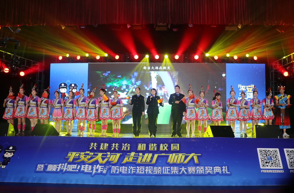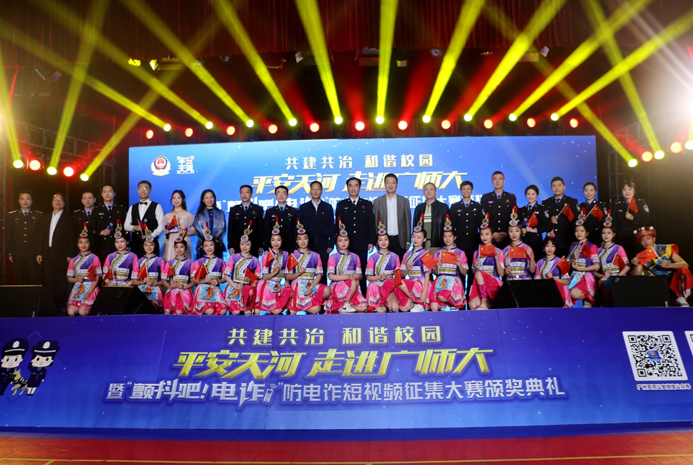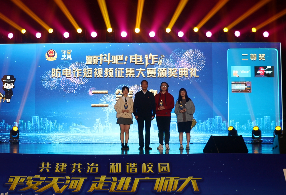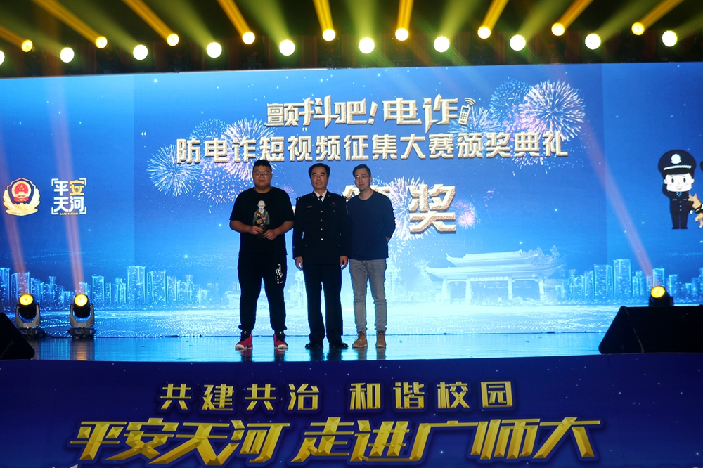 12月23日晚,广州市公安局天河区分局“平安天河”宣讲团走进广东技术师范大学,举办安全防范宣讲暨“颤抖吧,电诈”防电诈短视频征集大赛颁奖典礼。我校黄秋文副校长,广州市天河区副区长、天河公安分局局长刘武彬等出席典礼并为获奖选手颁奖,广州市公安局宣教处、天河区委宣传部、天河区21个派出所相关负责人,以及我校党委宣传部、保卫处、学生工作部、团委等部门负责人和师生代表共1000多人参加了颁奖典礼。
