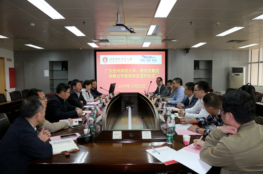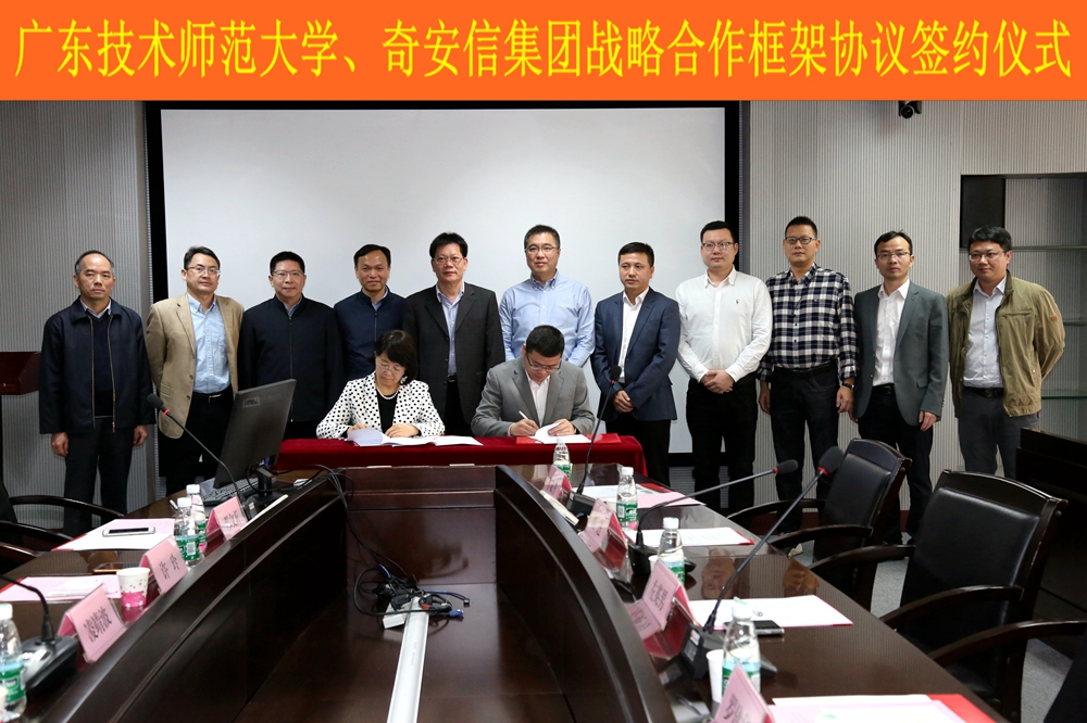 凌靖波向来宾介绍我校基本情况和近年来的快速发展,我校是全国独立设置的职业技术师范院校、首批广东省普通本科转型试点高校。此次合作双方基于优势资源的深度融合,合作建设广师大网络空间安全学院。奇安信集团将助力广师大在网络空间领域领先的科技能力、实践能力和人才优势,培养出符合网络空间安全行业需求的高水平、应用型网络空间安全人才。
