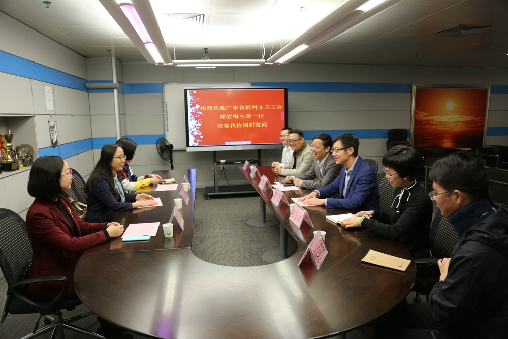 1月9日,广东省教科文卫工会主席谢岩梅一行莅临我校开展调研慰问。学校党委副书记、工会主席贺勇,校工会全体同志、劳模先进教师、扶贫工作一线教师和困难教师代表参加了座谈会。
