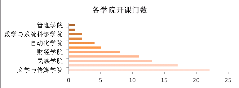 3月2日正式开课以来,学校研究生线上教学整体运转顺利,教师课前充分准备,借助在线课程资源和各类网络教学平台工具,课堂氛围良好,学生积极互动,教学运行整体平稳。按照原定的教学计划,依照专业划分,第一周全校应开公共基础课8门,专业课程107门,实际开课公共基础课5门,专业课程93门,开课比例达到85%以上;其中文学与传媒学院开设的专业课程最多,达22门,其次为教育科学与技术学院和民族学院,分别为17门、13门。
