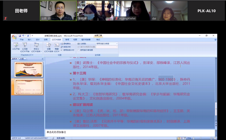 线上教学过程中,学校领导高度重视教态学情,加强教学质量监控和指导,3月4日,戴青云副校长带领研究生处工作人员通过网络平台调研检查线上教学运行情况。通过网络观摩民族学院邱运胜老师的《岭南区域社会历史》、袁裕辉教授为新闻传播学开设的《整合品牌传播研究》等课程的实时在线课堂,与师生在线一起听课,抽查课程在线教学准备及平台使用情况。戴青云对研究生在线教学顺利启动表示满意,对授课教师各项工作给予肯定,并提出几点要求:一是落实好课程、平台、教师、学生、时间等五个教学要素,确保教学运行平稳有序;二是为师生做好服务,各研究生培养单位要周密安排、协调沟通,保障线上教学运行有序;三是在加强督导的同时,要推出优秀教学案例,引领带动研究生课程线上教学质量不断提升。