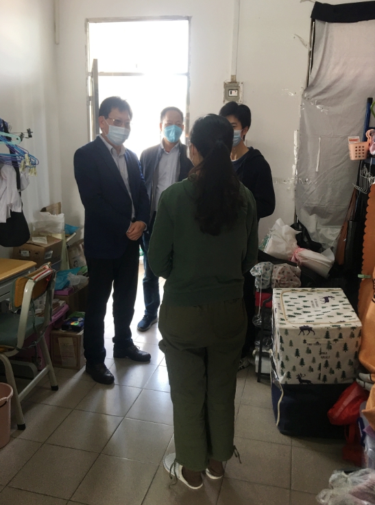 随后,凌靖波率队到北校区检查疫情防控工作和线上教学情况,通过走访校园,深入学生宿舍,详细了解了北校区疫情防控工作和财经学院留校学生学习生活和日常管理等方面情况,叮嘱他们认真做好求职就业、论文撰写等方面工作,并代表学校向他们致以诚挚的慰问。走访过程中,凌靖波听取了财经学院有关工作情况汇报,详细了解了财经学院开展线上教学、实习安排、实验室建设筹备进度等情况。