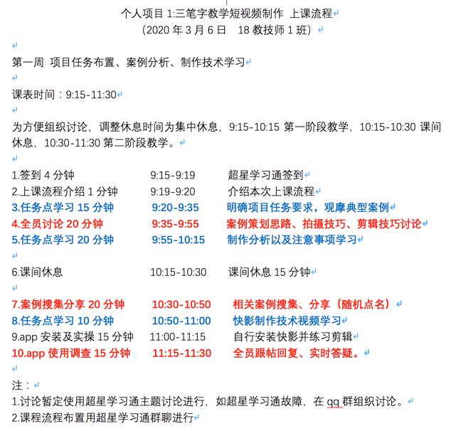 图为 《教学视频资源编导与制作》第一周教学流程