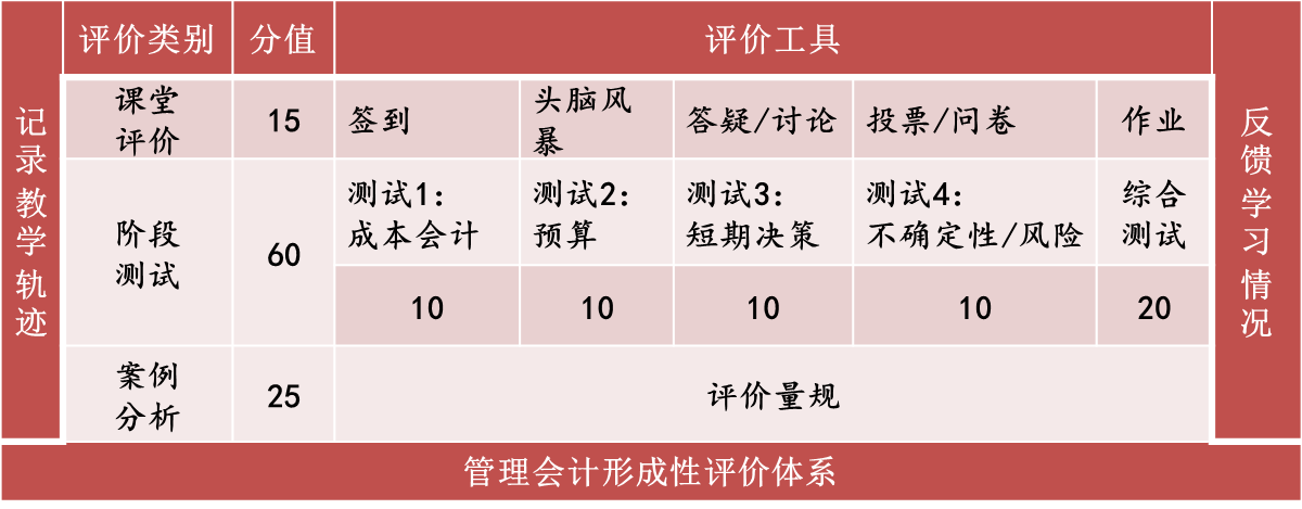 管理会计(双语)是ACCA课程体系中管理会计、财务管理系列的基础课程,旨在为后继课程F5(业绩管理)、F9(财务管理)提供基本的数量分析方法和技巧。该课程要求学生能熟练运用统计常用分析方法,成本核算方法,成本差异分析方法,简单的生产预测与决策方法以及简单成本预算法等基本方法。该课程是会计学专业(创新实验班)的基础专业课程,具有实务性强,应用度广以及计量分析法众多的特点。学生需要在掌握成本会计核算的基础上,深入了解企业的业务实质,做到业财融合,为企业进行长期规划,中短期控制,以及系列的业务决策。