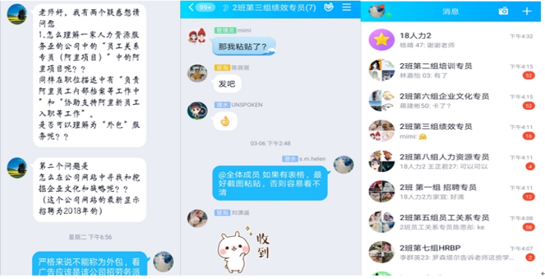 鉴于学生们身处不同地点参与线上学习而无法像现实课堂教学那样与老师同学们进行自然互动,本课程要求每班学生分成8个小组并组建小组QQ群,在课前、课中与课后等教学环节中都要求学生们通过小组QQ群开展学习和讨论。任课教师还通过加入每个小组QQ群,在课前、课中与课后全过程地实时了解各小组的学习情况,并在小组群里及时对各小组进行指导和答疑。