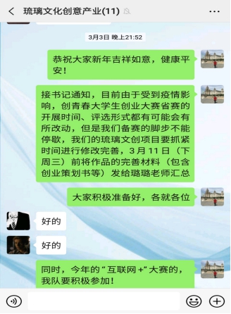 疫情防控期间,美术学院充分利用网络媒介,在全院学委群、班委群、创新创业教育课程群和竞赛团队群等及时发布创新创业教育、比赛等方面的各类信息,宣传和传达关于疫情防控期间做好创新创业教育的文件精神、决策部署和任务要求,号召同学们积极参与创新创业教育训练、积极准备中国“互联网+”创新创业大赛和“挑战杯·创青春”大学生创业大赛。截至目前,美术学院共有15支队伍报名参加中国“互联网+”创新创业大赛校赛选拔赛和4支队伍进入“挑战杯·创青春”大学生创业大赛校赛复赛。