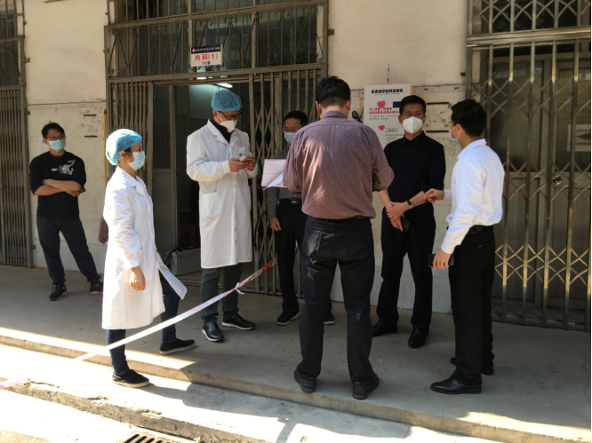 苏晖首先到东校区大门口详细检查了分区等候、查验证件、检测体温、异常情况处置流程,随后到门诊部检查了异常情况隔离处置情况,最后到饭堂检查了饭堂供餐准备、饭堂员工体温检测和就餐体温检测等情况。