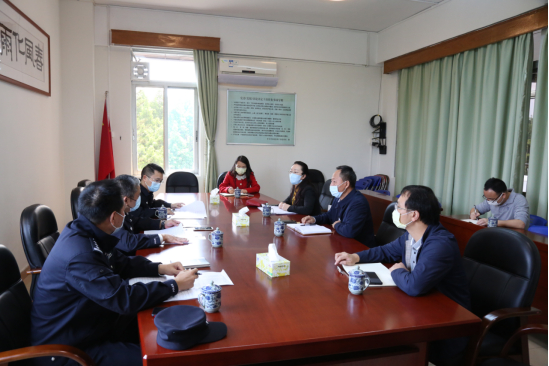 为加强广州市内高校疫情防控指导力度,进一步压实防控主体责任,坚决防止境外疫情输入,4月15日上午,广州市公安局内保支队政委彭国安、副队长蒙锋一行到学校调研指导学校疫情防控工作,在东校区行政楼四楼会议室召开调研座谈会。学校副校长黄秋文,党办、保卫处、国际教育学院负责人参加座谈会。